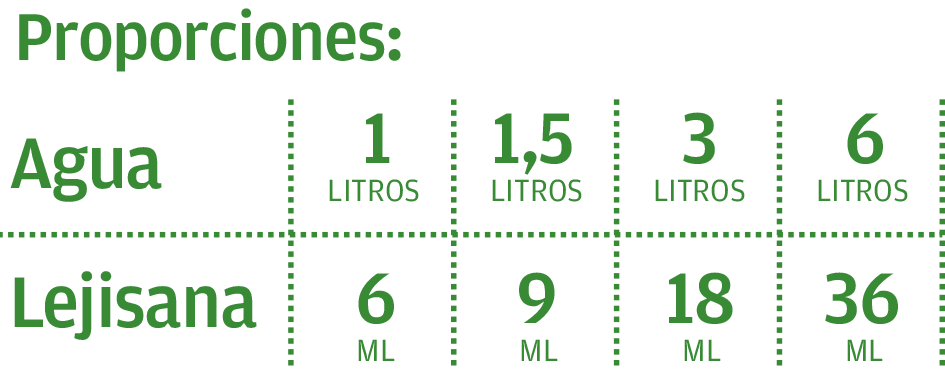 Agrega Lejisana al agua en función de las proporciones indicadas en la tabla que figura en la etiqueta